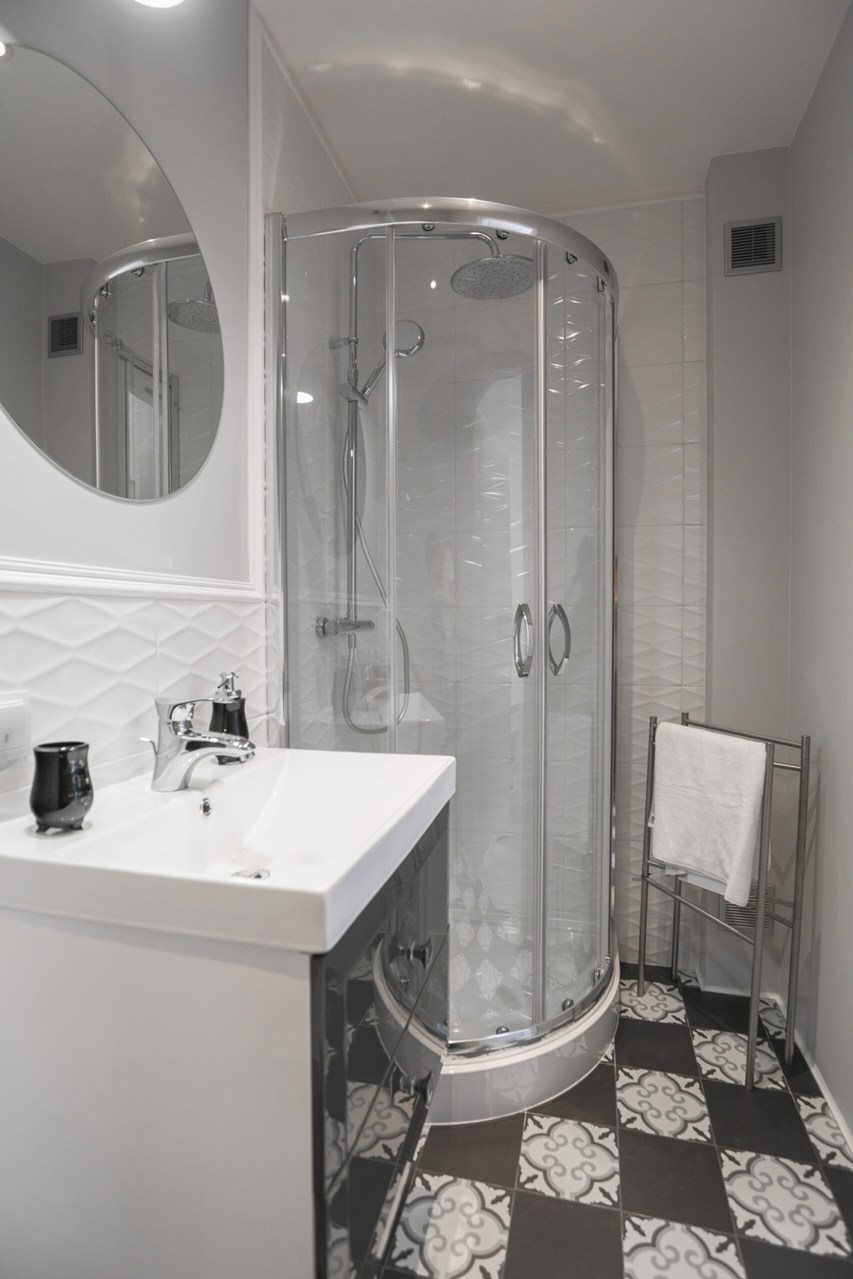 Mieszkanie przeszło generalny remont. Z uwagi na miejsce usytuowania kamienicy, zrealizowany projekt wyróżnia się eleganckim designem optymalnie wykorzystującym powierzchnię. Styl wykończenia mieszkania idealnie komponuje się z kamienicą. Mieszkanie przygotowane dla osób poszukujących klimatu „starej Warszawy” a jednocześnie ceniących elegancję.